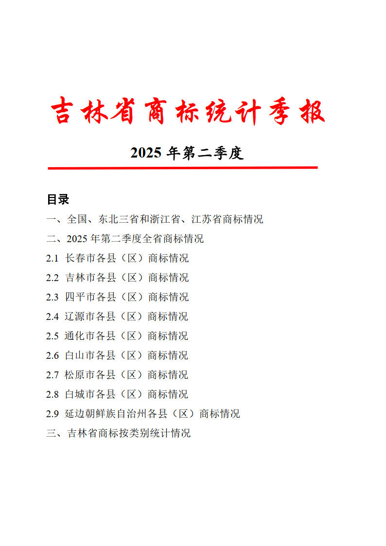 吉林省商标统计季报2025年第二季度