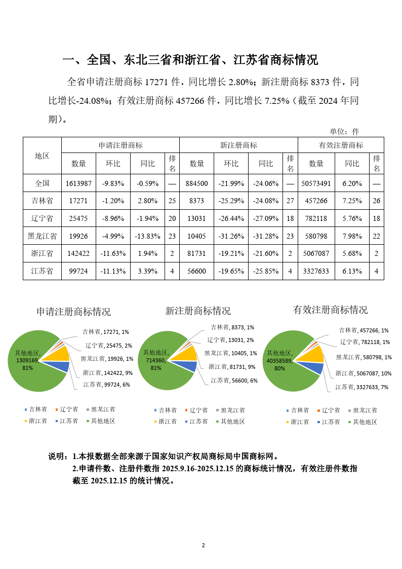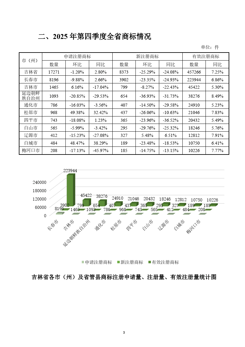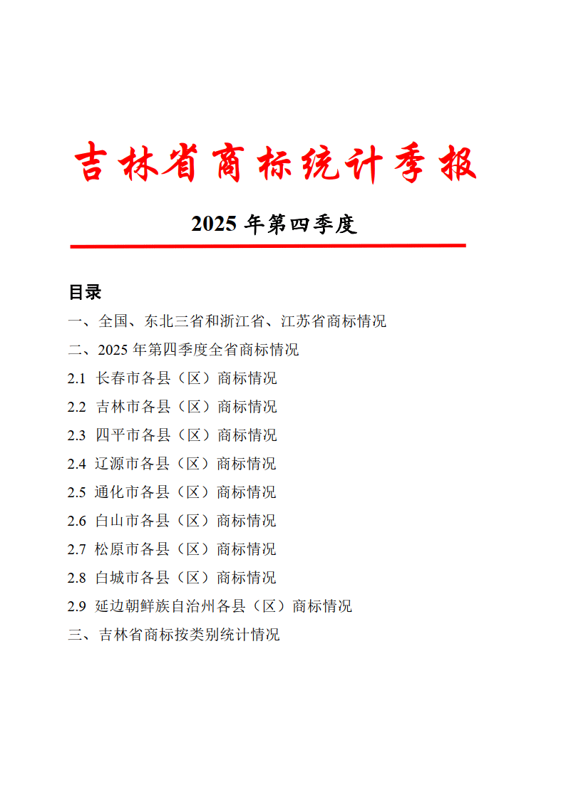 吉林省商标统计季报2025年第四季度
